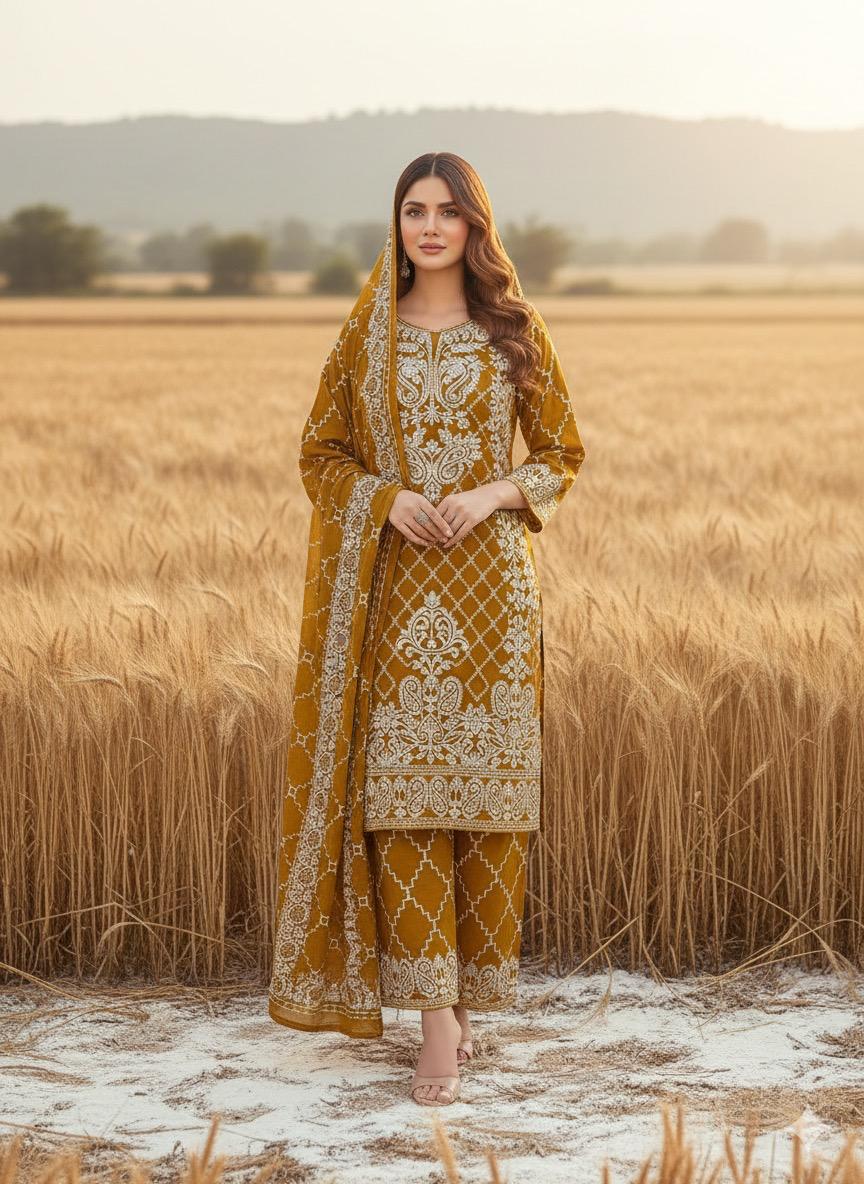 Ladies 3 pc organza party wear ready to wear